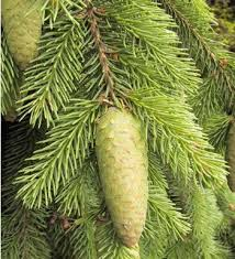 Aiguilles simple "piquante" à talon. Cônes vers le bas. "Picea pisse en bas".