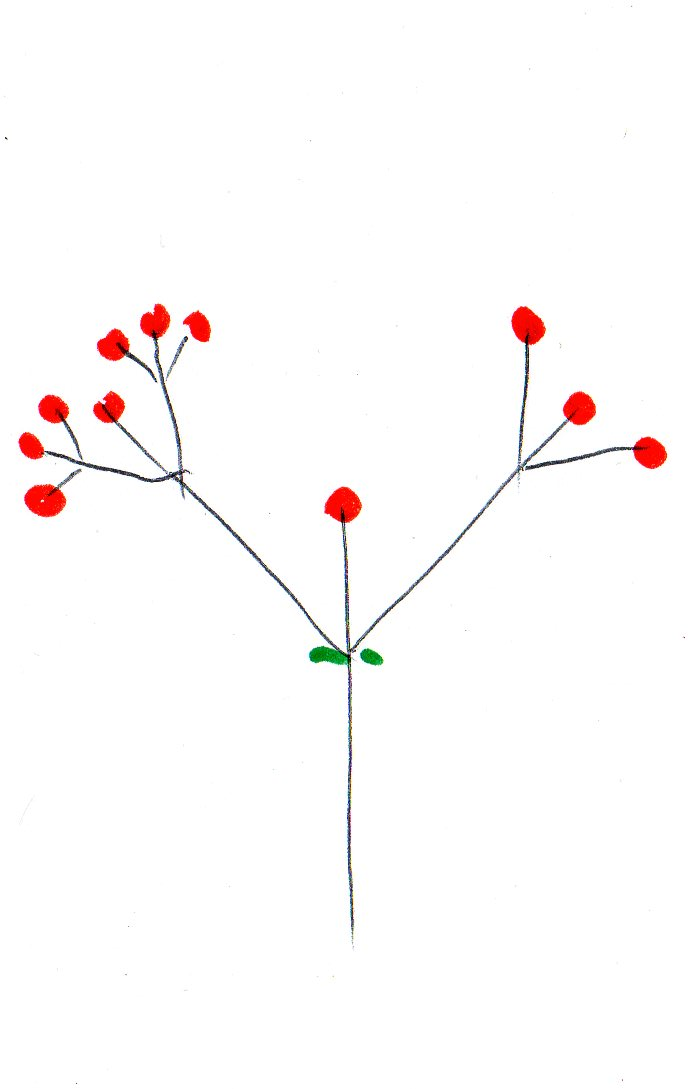 La cyme bipare: deux axes démarrent à chaque bifurcation, Gypsophylla paniculata